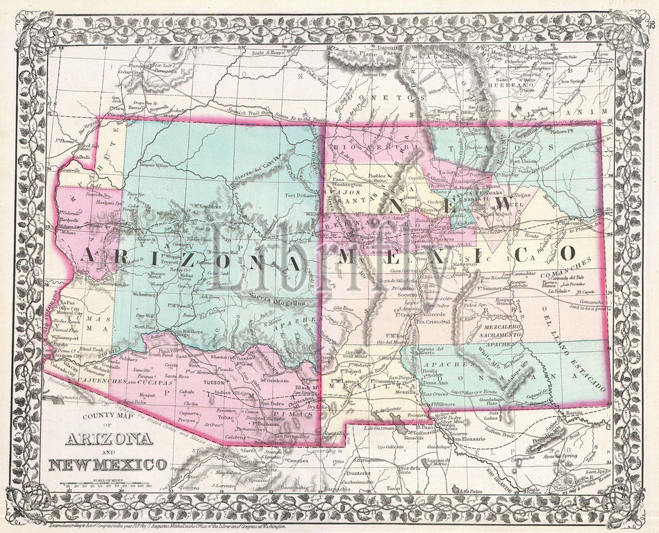 1877, Mitchell Map of Arizona and New Mexico
