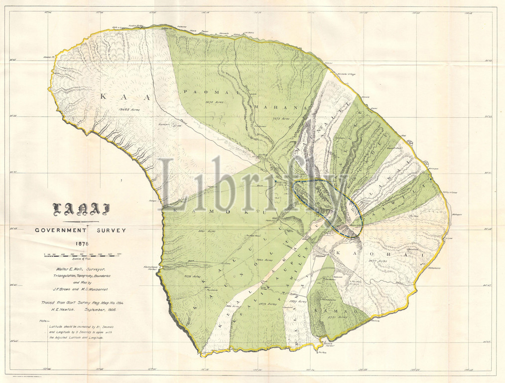 1878, Government Land Office Map of Lanai, Hawaii