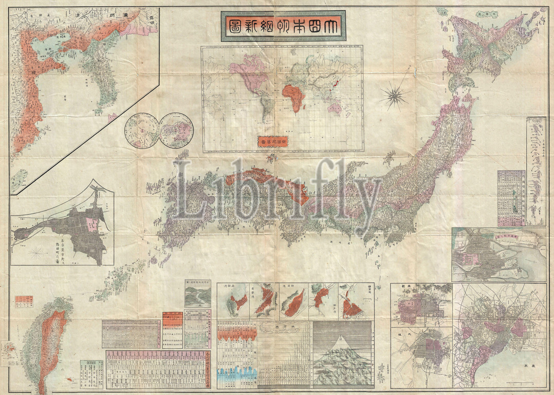 1895, Meiji 28 Japanese Map of Imperial Japan with Taiwan