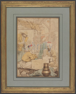 Images at Librifly search results: Watercolor clear search 32.428 / 2.589.715 Entries < previous page Page 87 / 325 next page > Two Jeyties Weightlifting, Gangaram Chintaman Tambat, active 1790s, Anglo-Indian, undated, Watercolor, white gouache and graphite on medium, slightly textured, cream laid paper, Sheet: 7 3/8 × 8 15/16 inches (18.7 × 22.7 cm Memorial to Heigham Bendish and Heigham Bendish Junior from East Ham Church, Daniel Lysons, 1762–1834, British, between 1796 and 1811, Pen and black ink, watercolor and gouache over graphite on medium, slightly textured, cream wove paper, A Seated Peasant Boy Seen From Behind, Samuel Prout, 1783–1852, British, undated, Graphite and watercolor on moderately thick, slightly textured, beige wove paper, Sheet: 2 13/16 x 1 1/4 inches (7.1 x 3.1 cm), barrels, boy, coat, figure How to Ride Genteel and Agreeably Downhill, Thomas Rowlandson, 1756–1827, British, undated, Watercolor and graphite with pen and red-brown ink on medium, slightly textured, cream wove paper, Mount: 4 3/16 x 4 5/16 inches (10.6 x 11 cm) and Fort Putnam From Constitution Island, Thomas Sully, 1783–1872, American, undated, Watercolor and graphite on medium, slightly textured, beige, wove paper, Sheet: 3 15/16 × 5 1/4 inches (10 × 13.3 cm An Observation Tower, Samuel Davis, 1757–1819, British, after 1806, Watercolor, with pen, in brown ink, and graphite on moderately thick, slightly textured, cream, wove paper, mounted on, moderately thick, moderately textured, cream, A Fish, Luigi Balugani, 1737–1770, Italian, undated, Watercolor and graphite on moderately thick, moderately texturedl, cream laid paper, Sheet: 9 1/8 x 13 1/4 inches (23.2 x 33.7 cm), eye, fish Road to Riches and delightfull Parts, Or, The Recruiting Officers ? Matrimonial Trip to the Continent., (?) William Dent, active 1784–1793, 1792, Line engraving with watercolor on laid paper, Sheet: 10 x 13 7/8in. (25.4 x 35.2cm Beaudesert, Staffordshire, Moses Griffith, 1747–1819, British, undated, Graphite, pen and black ink and watercolor on medium, cream, slightly textured laid paper, Sheet: 12 3/4 x 18 1/2 inches (32.4 x 47 cm), architectural subject, Lilleshall, Shropshire: North Entrance Front, Sir Jeffry Wyatville, 1766–1840, British, 1826, Graphite, pen and black ink, watercolor on slightly textured, medium, white wove paper bar scale of 1/12 inch to 1 foot, Sheet: 13 × 19 inches Trying the Mare, Samuel Alken, 1756–1815, British, 1813, Watercolor, pen and black ink, and graphite on medium, slightly textured, beige, wove paper, Sheet: 8 11/16 × 10 15/16 inches (22.1 × 27.8 cm), birds, dog (animal), fence, Kourayim, Edward Lear, 1812–1888, British, 1867, Watercolor, graphite, pen and brown ink on medium, slightly textured, cream wove paper, Sheet: 5 1/4 x 9 inches (13.3 x 22.9 cm), bushes, figure (representation), landscape, palm trees, African Civet, Samuel Howitt, 1756–1822, British, ca. 1817, Watercolor, pen and black ink and graphite on medium, slightly textured, cream wove paper, Sheet: 9 5/8 × 7 3/8 inches (24.4 × 18.7 cm), animal art A Kangaroo with three kangaroos in the background, James Sowerby, 1756–1822, British, undated, Watercolor and gouache over graphite on moderately thick, slightly textured, cream wove paper, Sheet: 13 1/4 × 8 1/2 inches (33.7 × 21.6 cm), Henry Sass, Daniel Maclise, 1806–1870, Irish, between 1830 and 1835, Black chalk, graphite, watercolor, and red chalk on medium, slightly textured, blue wove paper, Sheet: 7 7/16 × 5 1/2 inches (18.9 × 14 cm), artist, bench, chair, Ground Plan for a Bungalow, Robert Mabon, died 1798, British, undated, Watercolor and graphite with pen and black ink on medium, slightly textured, cream laid paper, Sheet: 23 × 11 3/4 inches (58.4 × 29.8 cm), architectural subject A Porcupine Fish, John Smart, 1741–1811, British, undated, Watercolor on medium, slightly textured, cream wove paper, Sheet: 7 x 9 9/16in. (17.8 x 24.3cm) and Sheet: 7 × 9 5/8 inches (17.8 × 24.4 cm), animal art, fish A Collection of Surveys of Scottish Estates of the Earl of Selkirk: Culdooch, unknown artist, undated, Graphite, watercolor, pen and black ink on slightly textured, moderately thick, cream wove paper, Sheet: 23 1/4 × 34 1/4 inches (59.1 × Barges on a Canal in Rotterdam, James Holland, 1799–1870, British, 1845, Watercolor, gouache, and graphite on moderately thick, moderately textured, beige wove paper, Sheet: 9 5/8 × 17 1/8 inches (24.4 × 43.5 cm), barges, canal, Illustrations from Mr. Lambkin, plate 22, Print made by George Cruikshank, 1792–1878, British, undated, Etching with hand coloring in watercolor on medium, slightly textured, cream wove paper Jerusalem, Plate 25, 'And there was heard....', Print made by William Blake, 1757–1827, British, 1804 to 1820, Relief etching printed in orange with pen and black ink, watercolor, and gold on moderately thick, smooth, cream wove paper, Diners in a Chop Shop, Thomas Rowlandson, 1756–1827, British, between 1800 and 1805, Watercolor with pen and brown and red-brown ink over graphite, verso: black crayon, graphite, and ink lines, numbers and tracing of recto image on medium, Near Beer El Abt, 4:30 pm, 28 March 1867 (23), Edward Lear, 1812–1888, British, 1867, Watercolor, pen and brown ink, and graphite on thick, rough, cream wove paper, Sheet: 3 1/4 × 9 7/8 inches (8.3 × 25.1 cm), clouds, desert, Eastbourne from Lord G.: Cavendish's Seat in the Park, John Nixon, ca. 1760–1818, British, 1787, Watercolor and graphite on medium, slightly textured, cream laid paper, Sheet: 5 5/16 × 7 1/2 inches (13.5 × 19.1 cm), beaches, buildings, The First Book of Urizen, Plate 19, 'They Call'd Her Pity and Fled....' (Bentley 19), Print made by William Blake, 1757–1827, British, 1794, Color-printed relief etching in orange-brown with watercolor on moderately thick, slightly Launce Teaching His Dog Crab, Henry William Bunbury, 1750–1811, British, undated, Watercolor, pen and black ink, g