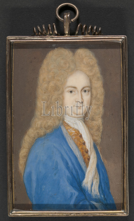 Aaron Hill, Dramatist, 1685-1750, J, Cooper, 1688–1720, Watercolor, ivory, Image, Frame, portrait, wig
