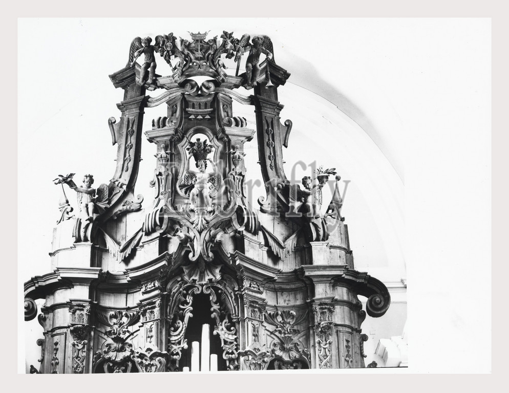 Abruzzo L'Aquila Sulmona S. Francesco della Scarpa, this is my Italy, the italian country of visual history, Views of the Baroque interior include a baroque organ, a dome frescoed with perspectival architecture, a loggia and confessional, wooden ciborium 16th century, altar statues and architectural sculpture, altar paintings of the Visitation, Saint Anthony of Padua, and the Assumption of the Virgin, wooden crucifix, wooden statue of St. Francis, holy water font, and a marble sarcophagus with a life-size dead Christ lying on the top.