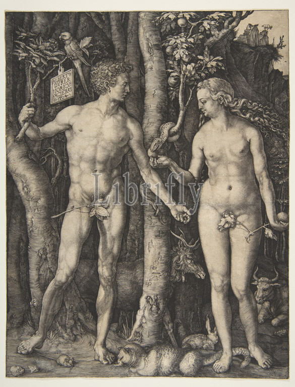Adam, Eve, 1504, Engraving, Sheet, 9 3/4, 7 1/2, 24.7, 19.1 cm, Prints, Albrecht Dürer, German, Nuremberg, 1471–1528