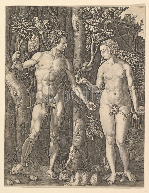 Adam, Eve, 1566, Engraving, third state, three, Prints, Jan, Johannes, Wierix, Netherlandish, Antwerp, 1549–1615, Brussels, After Albrecht Dürer, German, Nuremberg, 1471–1528