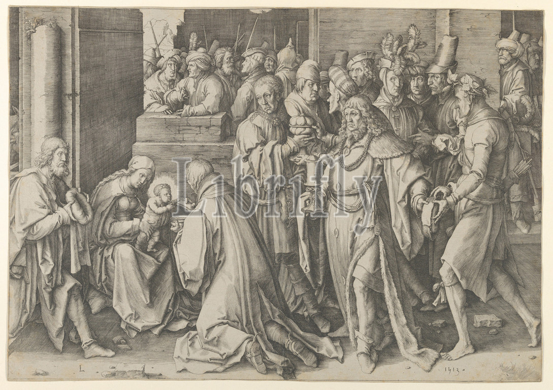Adoration, Magi, 1513, Engraving, first state, sheet, 11 13/16 x 17 1/16, 30 43.3 cm, Prints, Lucas van Leyden, Netherlandish, Leiden ca., 1494–1533, Leiden