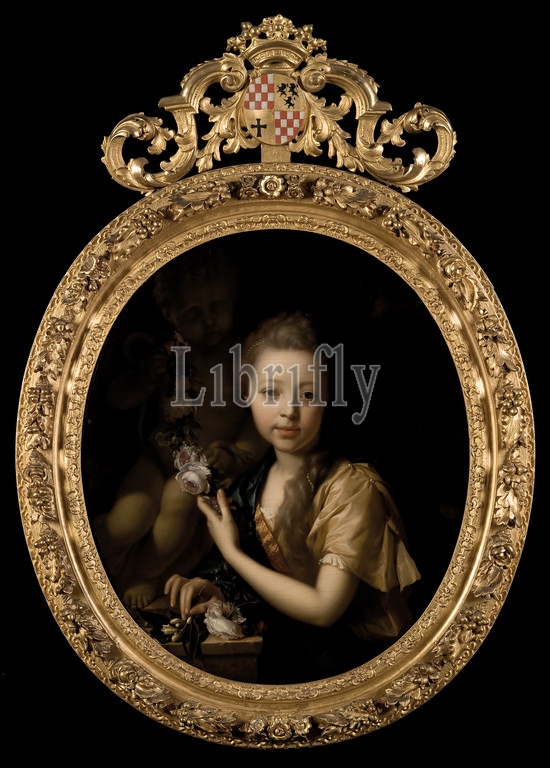 Adriaen van der Werff, Portrait of Maria van der Werff (1692-1731), portrait painting material linen oil painting, Oval portrait of girl representing the daughter of the painter Maria van der Werff at the age of 12, later the wife of Adriaen Brouwer Half-length looking to the left . To the left in the background garden statue (Hercules as putto with snake) that she panned orange blossom in the right hand Pearls in her hair. Orange blossoms and pearls refer to cleanliness; Hercules as baby, snake symbolizes possibly the power of virtue of Maria van der Werff lower left: signature and year: Chevr vr Werff. Ano 1704 child daughter Maria van der Werff Maria Brouwer Adriaen van der Werff Hercules Heracles Kralingen Rotterdam from family