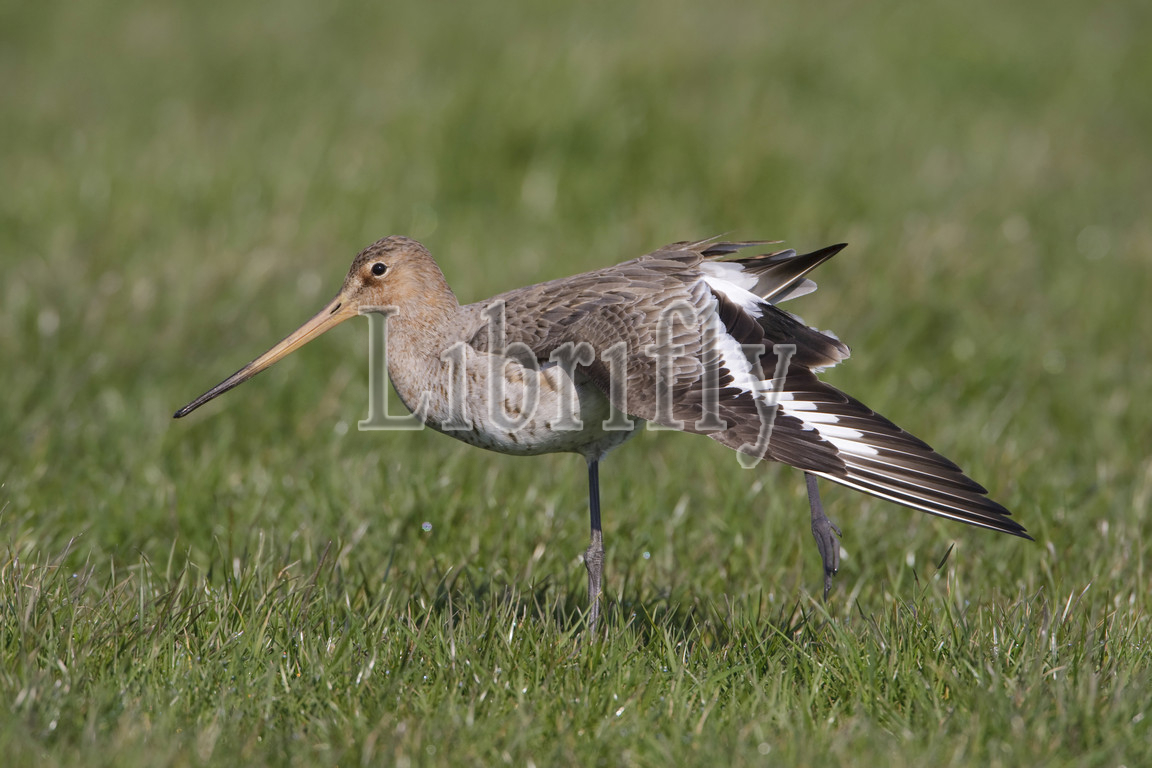 Adult female Black-tailed Godwit in meadow, Limosa limosa, Netherlands