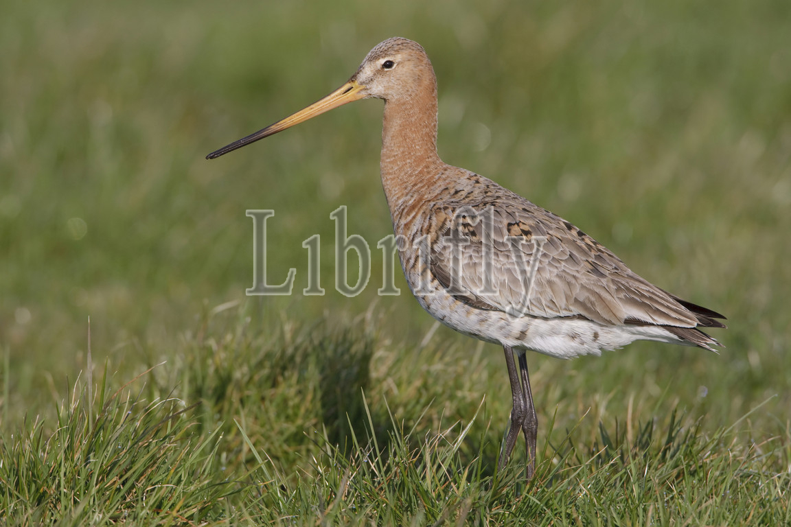 Adult female Black-tailed Godwit in meadow, Limosa limosa, Netherlands