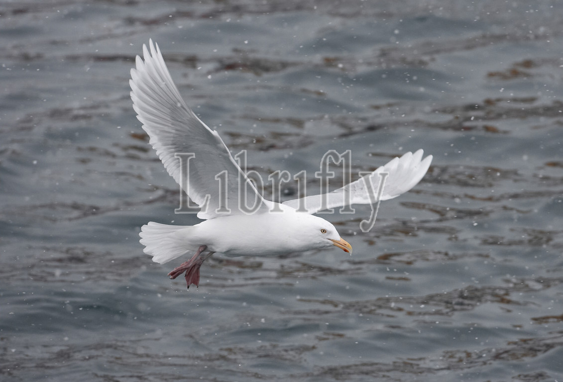 Adult Glaucous Gull in flight, Larus hyperboreus