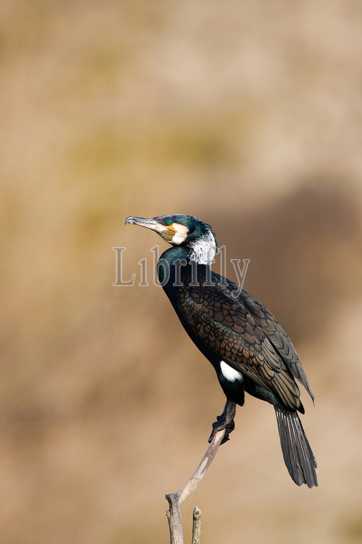 Adult Great Cormorant perched on branch, Phalacrocorax carbo