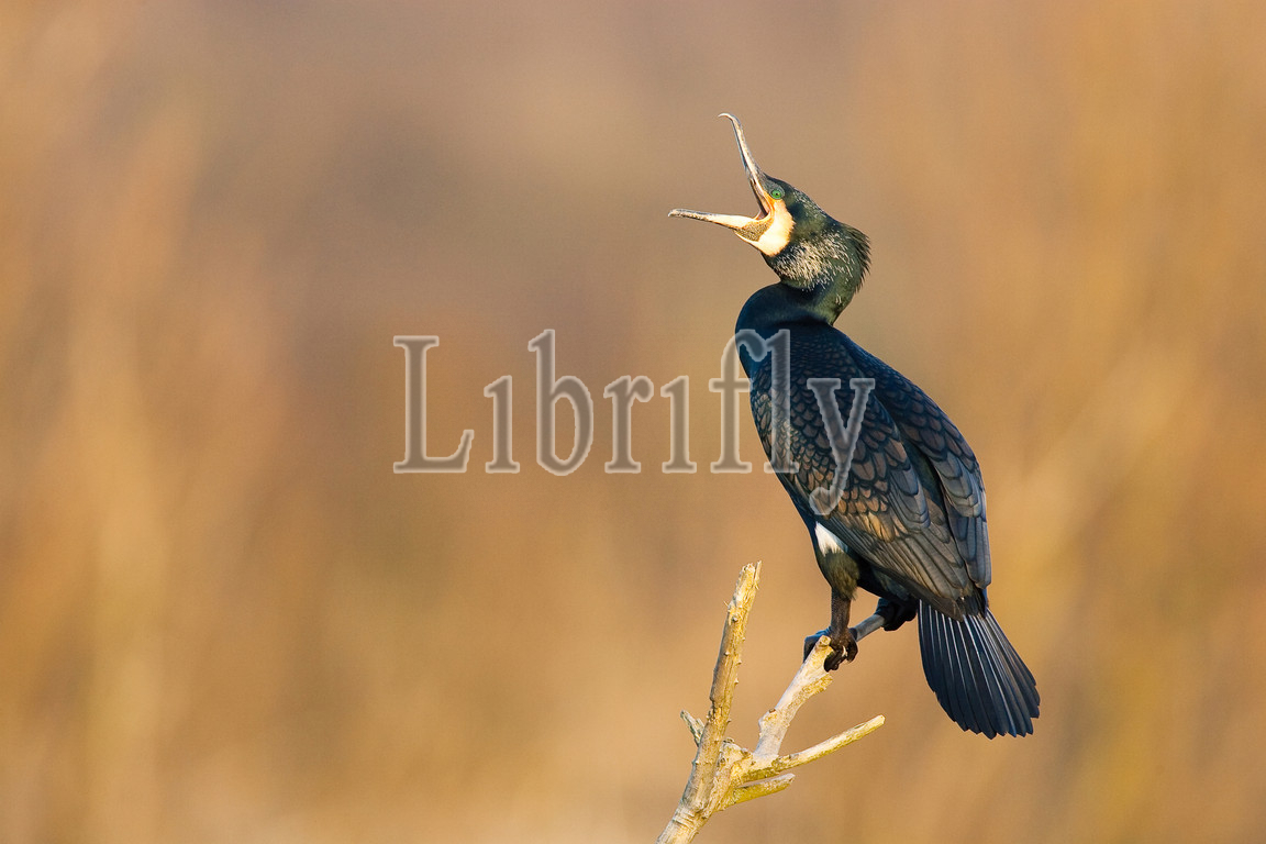 Adult Great Cormorant perched on branch, Phalacrocorax carbo