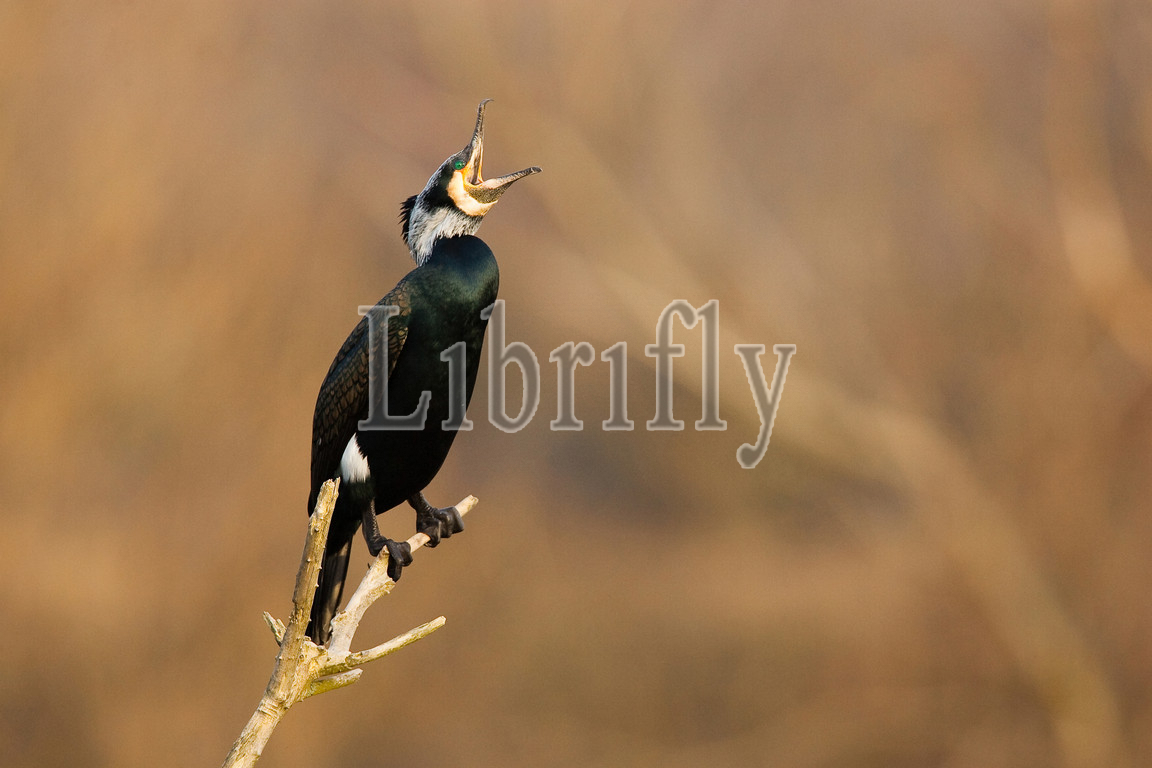 Adult Great Cormorant perched on branch, Phalacrocorax carbo