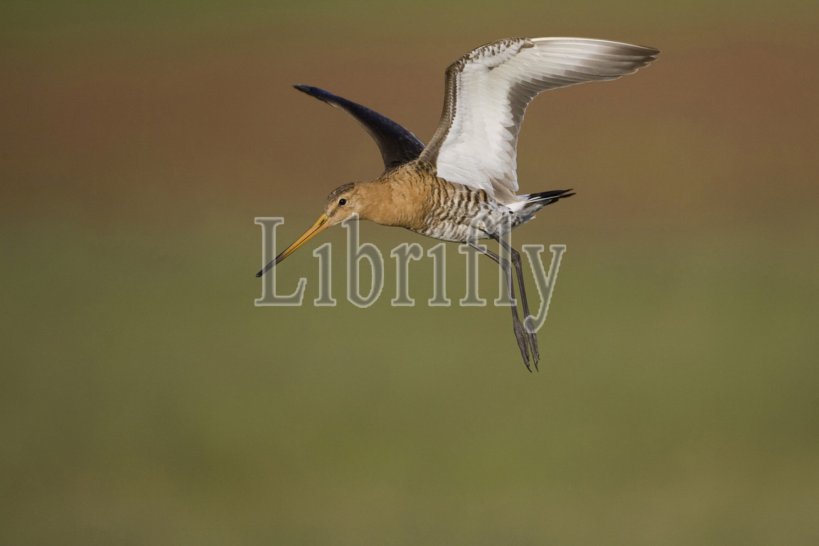 Adult male Black-tailed Godwit in flight, Limosa limosa
