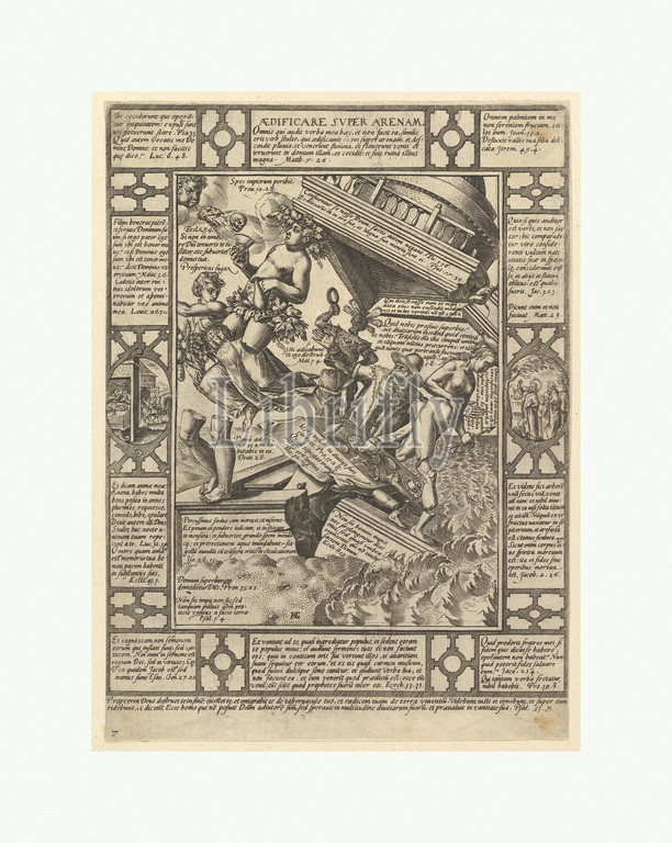 Aedificare Super Arenam, Allegories, Christian Faith, Christian, Profane Allegories, 1575–1617, Engraving, sheet, 10 3/16 x 7 3/8, 25.8 18.7 cm, Prints, Hendrick Goltzius, Netherlandish, Mühlbracht, 1558–1617, Haarlem