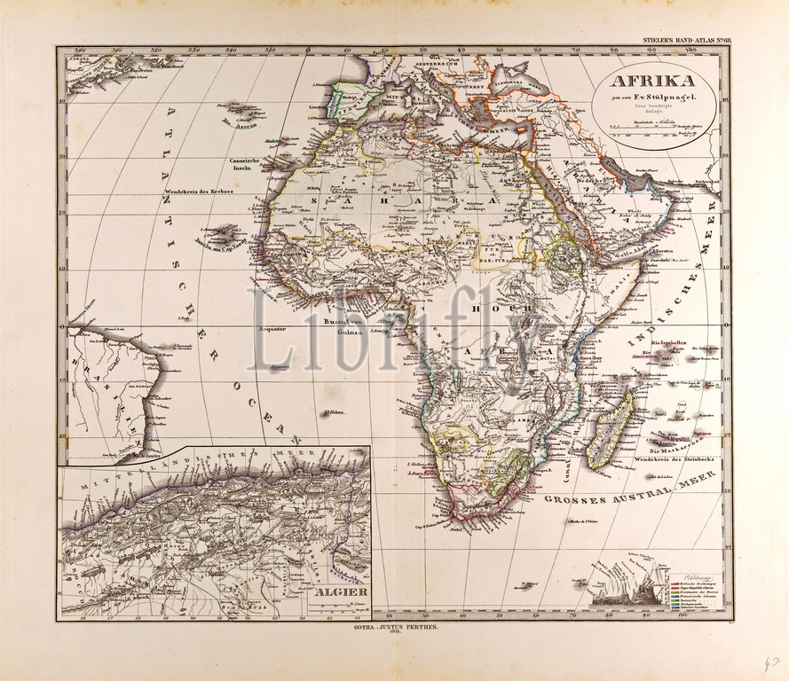 Africa Map 1874 Gotha Justus Perthes Atlas. Perthes Johan Georg Justus 1749 1816 German Publisher Was Born in Rudolstadt in 1749. In 1785 He Founded at Gotha the Business which Bears His Name Justus Perthes. In This He Was Joined in 1814 by His Son Wilhelm 1793 1853. He Laid the Foundation of the Geographical Branch of the Business for which It is Chiefly Famous by Publishing the and-Atlas (1817-1823) of Adolf Stieler (1775-1836). Wilhelm Perthes Engaged the Collaboration of the Most Eminent German Geographers of the Time Including Heinrich Berghaus Christian Gottlieb Reichard Karl Spruler and Emil Von Sydow. The Business Passed to His Son Bernard Wilhelm Perthes (1821-1857). In 1863 the Firm First Issued the Almanach De Gotha a Statistical Historical and Genealogical Annual (in French) of the Various Countries of the World.