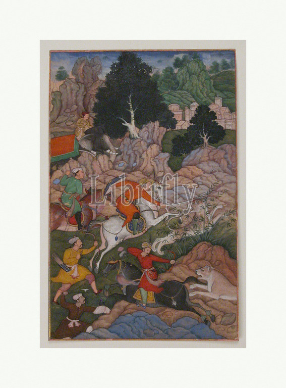 'Akbar Hunting', Folio from an Akbarnama (History of Akbar), late 16th century, Made in present-day Pakistan, probably Lahore, Opaque watercolor, ink, and gold on paper, Painting: 7 1/2 x 4 7/8 in. (19.1 x 12.4 cm), Codices