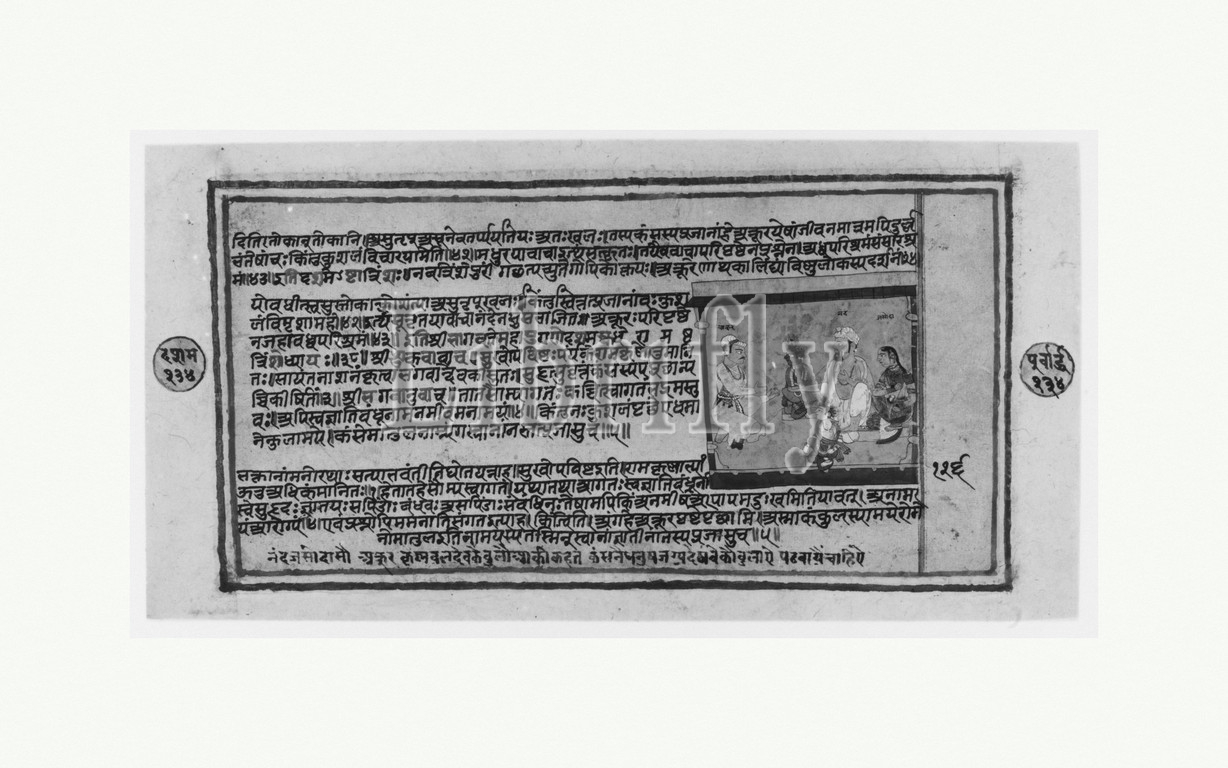 Akrura Informs Nanda, Yashoda, Page, Dispersed Bhagavata Purana, Ancient Stories, Lord Vishnu, ca, 1630–50, India, Rajasthan, Mewar, Ink, opaque watercolor, paper, 6 1/2 x 13 1/4, 16.5 33.7 cm, Paintings, evil, king, Kamsa, Krishna, nemesis, hatches yet, another, plan, kill, child-god, brother, sends Akrura, invite, boys, function, palace, plans, killed, enter, city