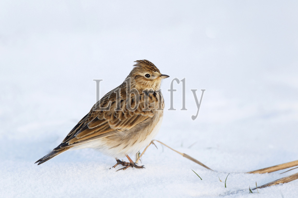 Alauda arvensis, Wintering Eurasian Skylark, foraging, snow covered field, acre, Netherlands, nature, bird, animal, wildlife, wild, fauna, natural, feather, sky, beak, wing, outdoor, freedom, colourful, Liszt, Natural History, ornithology, vertebrate animals, photography, color image