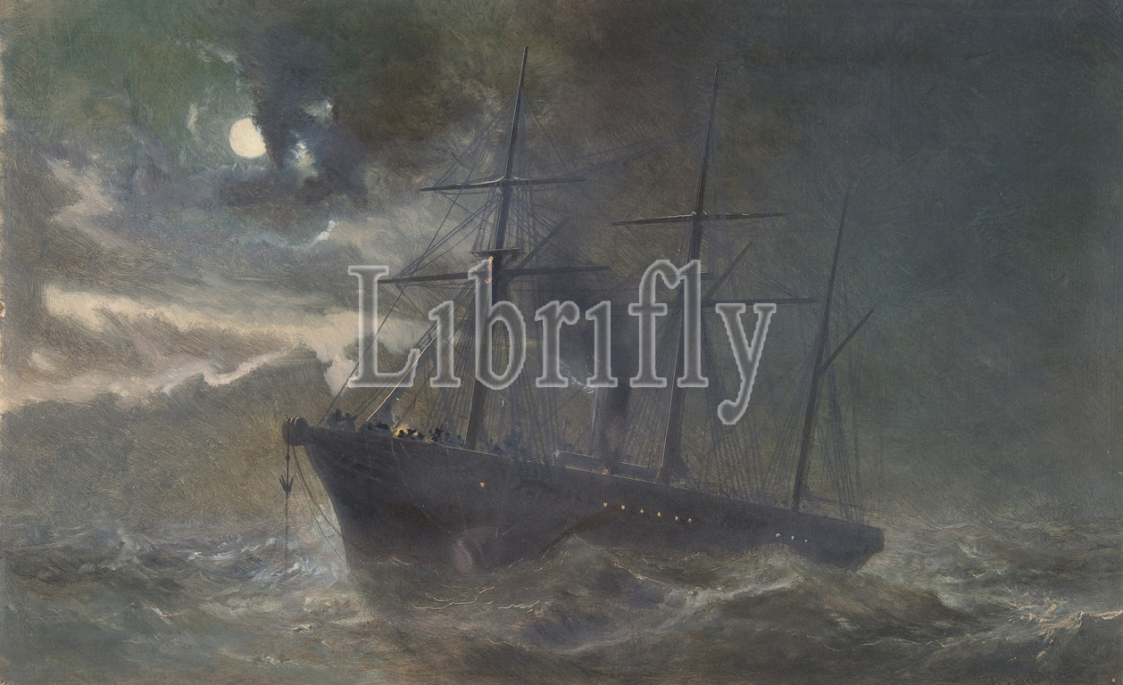The Albany Buoying a Bight of the Cable of 1865 on the Night of August 26th, 1866, 1866, Watercolor with touches of gouache, Sheet: 8 1/8 x 12 13/16 in. (20.6 x 32.5 cm), Drawings, Robert Charles Dudley (British, 1826–1909), One of the 19th century's great technological achievements was to lay a telegraphic cable beneath the Atlantic, allowing messages to speed back and forth between North America and Europe in minutes, rather than ten or twelve days by steamer