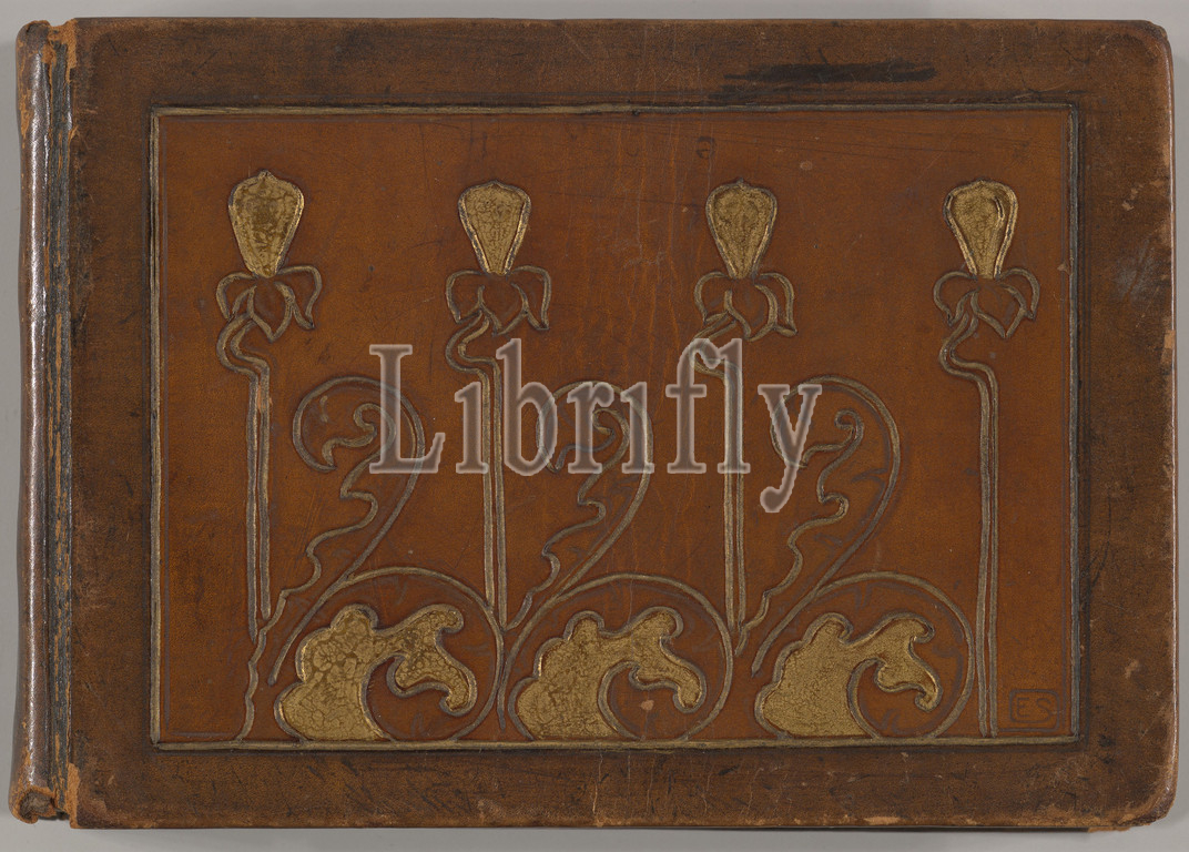Album, Designs, Art Nouveau Jewelry, 1899–1900, Graphite, gouache, Overall, 3 1/2 x 5 5/8, 8.9 12.7 1.6 cm, Edgar Gilstrap Simpson, British, 1867–1945, presumed, Small album, containing, 34, leaves, designs, Nouveau, jewelry, Bound, tooled, gilt leather, binding, designed, Simpson