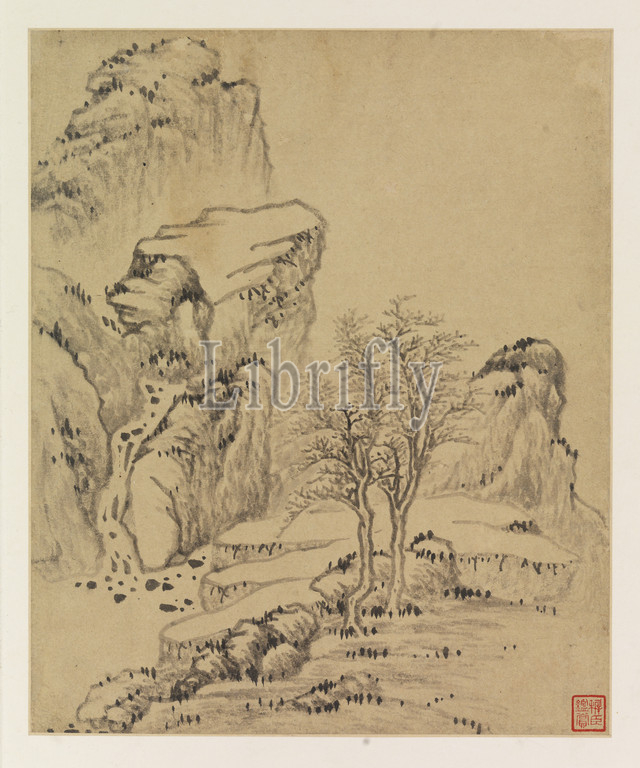Album of Landscape Paintings, Yang Wencong (Chinese, 1597-1645), Ming dynasty, period, Chongzhen, 1644, ink on paper, 11-7/8 x 9-3/4 in. (image) 15-1/4 x 11-7/8 x 1-1/8 in. (album) 15-1/4 x 23-5/8 x 1-1/8 in. (installed), Inscribed, signed and dated: Tenth lunar month of 1644, painted in Duncun [by] Yang Wencong of Jizhou Seal: Wencong Seal: Yang Bozi, Asian Art