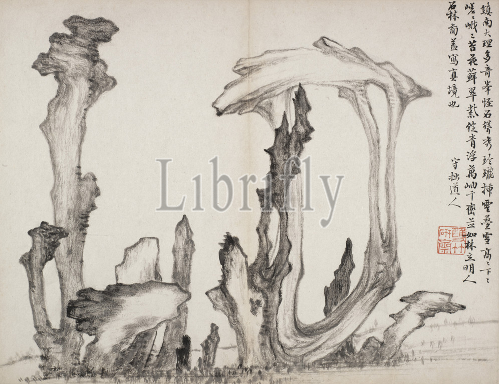 Album of Poetry and Painting, Hu Jiusi (Chinese), Qing dynasty, 1824, album (6 leaves), ink on paper, 13-1/2 x 10-1/2 in., Asian Art