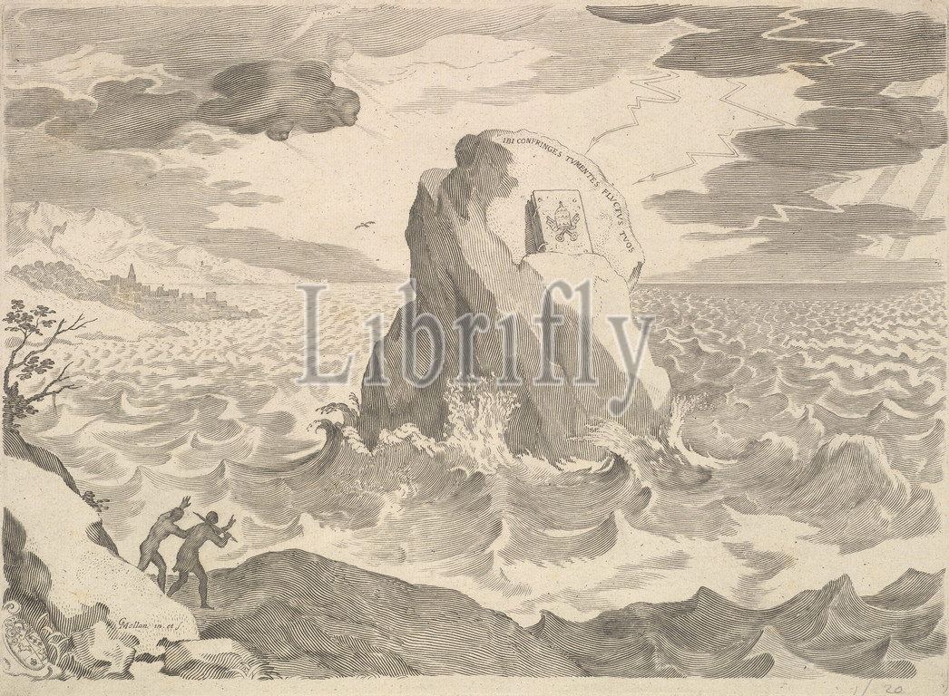 Allegory, Pelagian Heresy, égorie contre l'hérésy pélagienne et armoires, 17th century, Engraving, second state, three, sheet, 9 7/8 x 13 3/8, 25.1 34 cm, Prints, Claude Mellan, French, Abbeville, 1598–1688, Paris