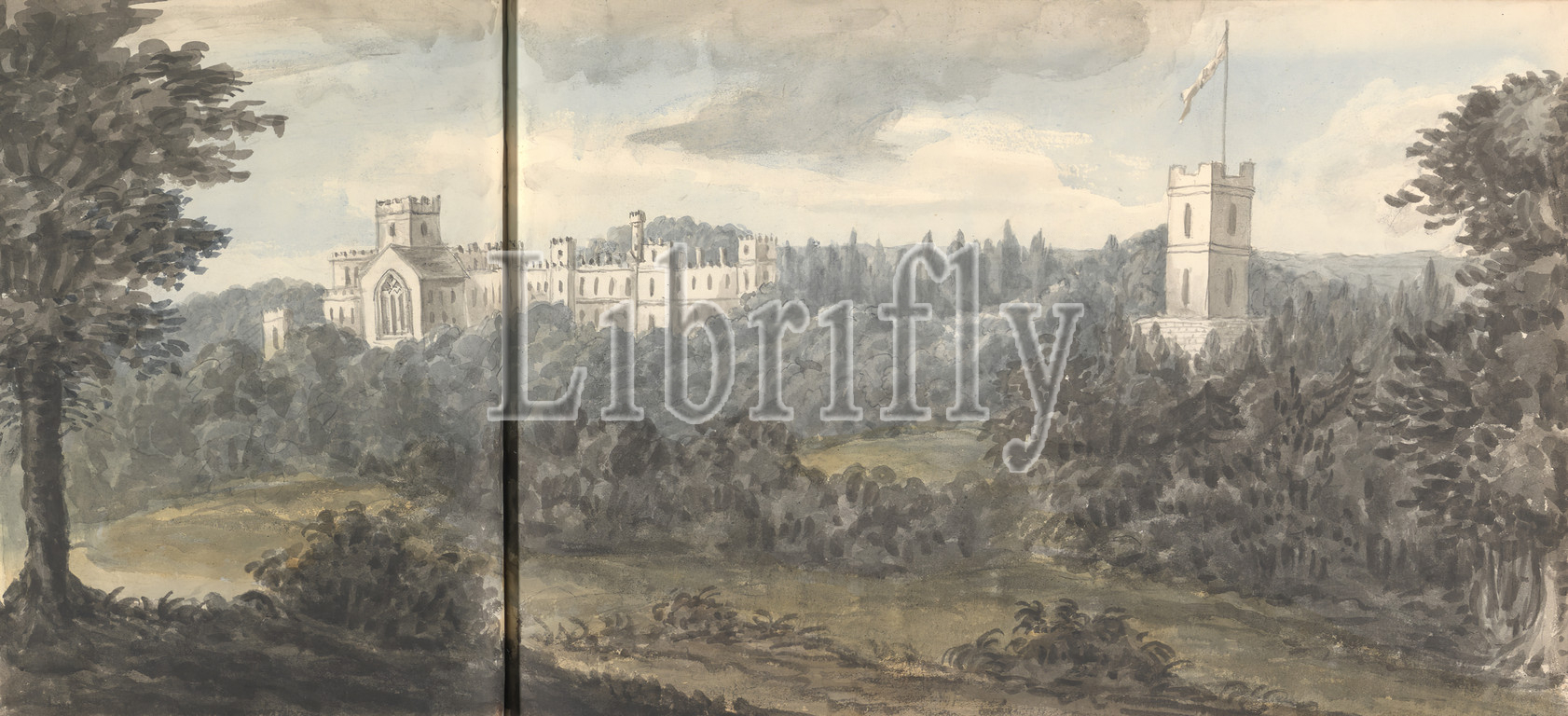 Alton Towers August 1830, Anne Rushout, ca. 1768–1849, British, 1830, Watercolor on moderately thick, slightly textured, cream wove paper