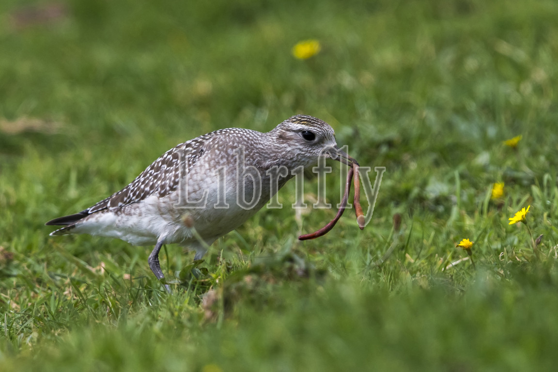 American Golden Plover with worm, Pluvialis dominica, Portugal