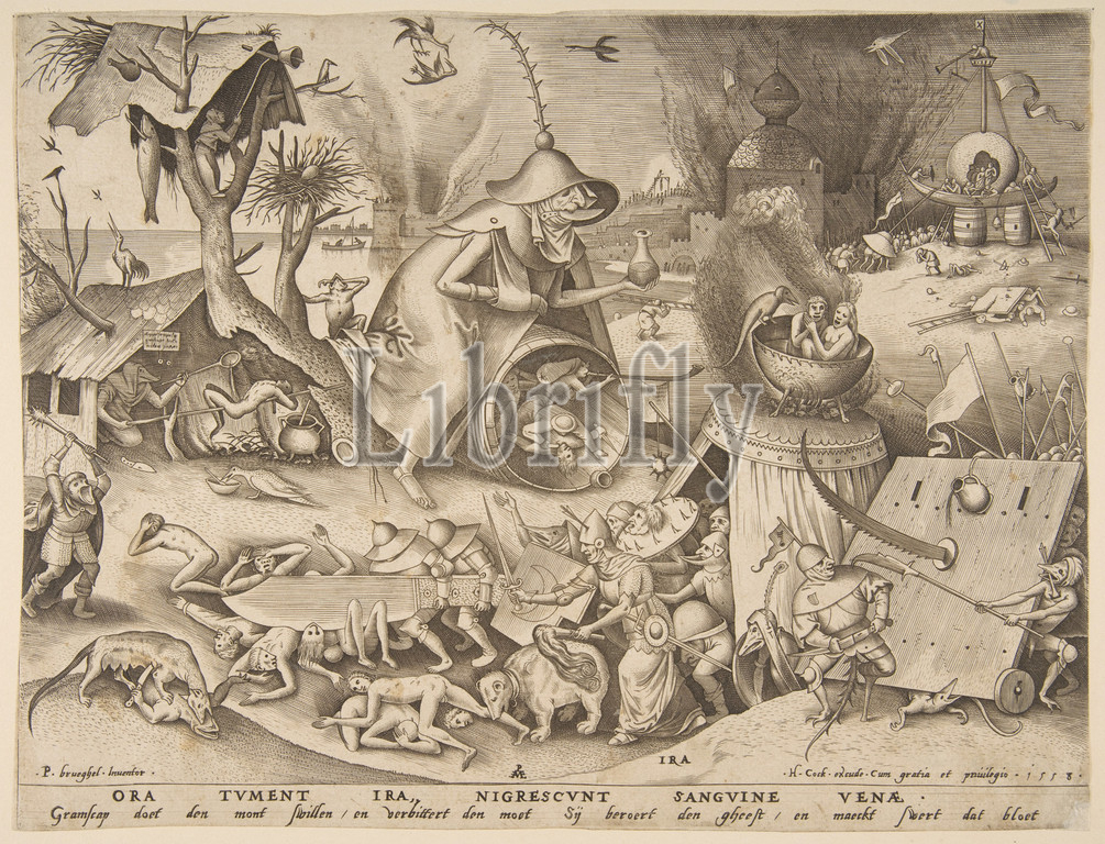 Anger, Ira, series, Seven Deadly Sins, 1558, Engraving, sheet, 8 7/8 x 11 11/16, 22.5 29.7 cm, Prints, Pieter van der Heyden, Netherlandish, ca., 1525–1569, After Pieter Bruegel the Elder, Breda, Brussels
