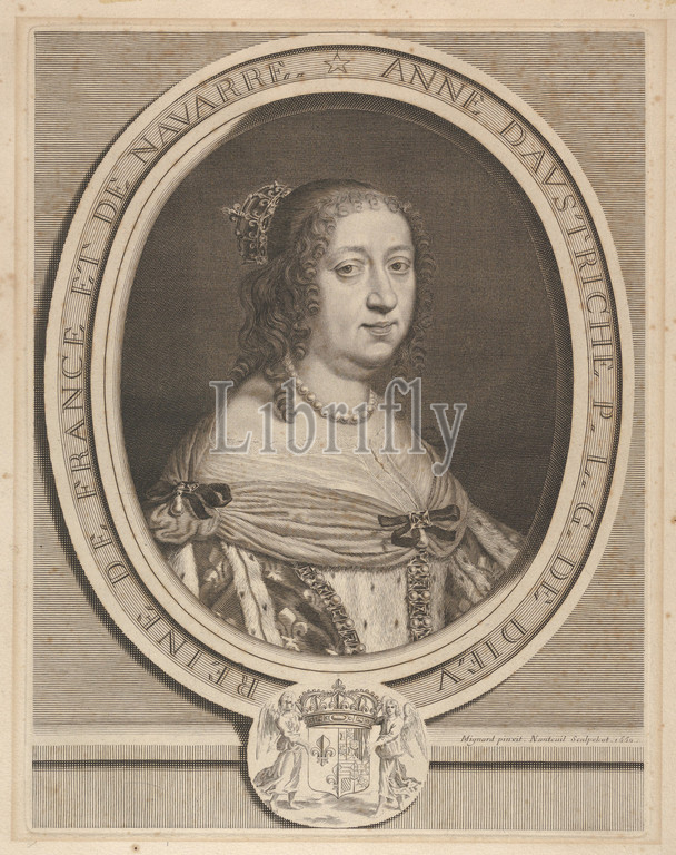 Anne, Austria, 1660, Engraving, fourth state, six, Petitjean & Wickert, Sheet, 14 9/16, 8 1/16, 37, 20.5 cm, Prints, Robert Nanteuil, French, Reims, 1623–1678, Paris, After Pierre Mignard, Troyes, 1612–1695