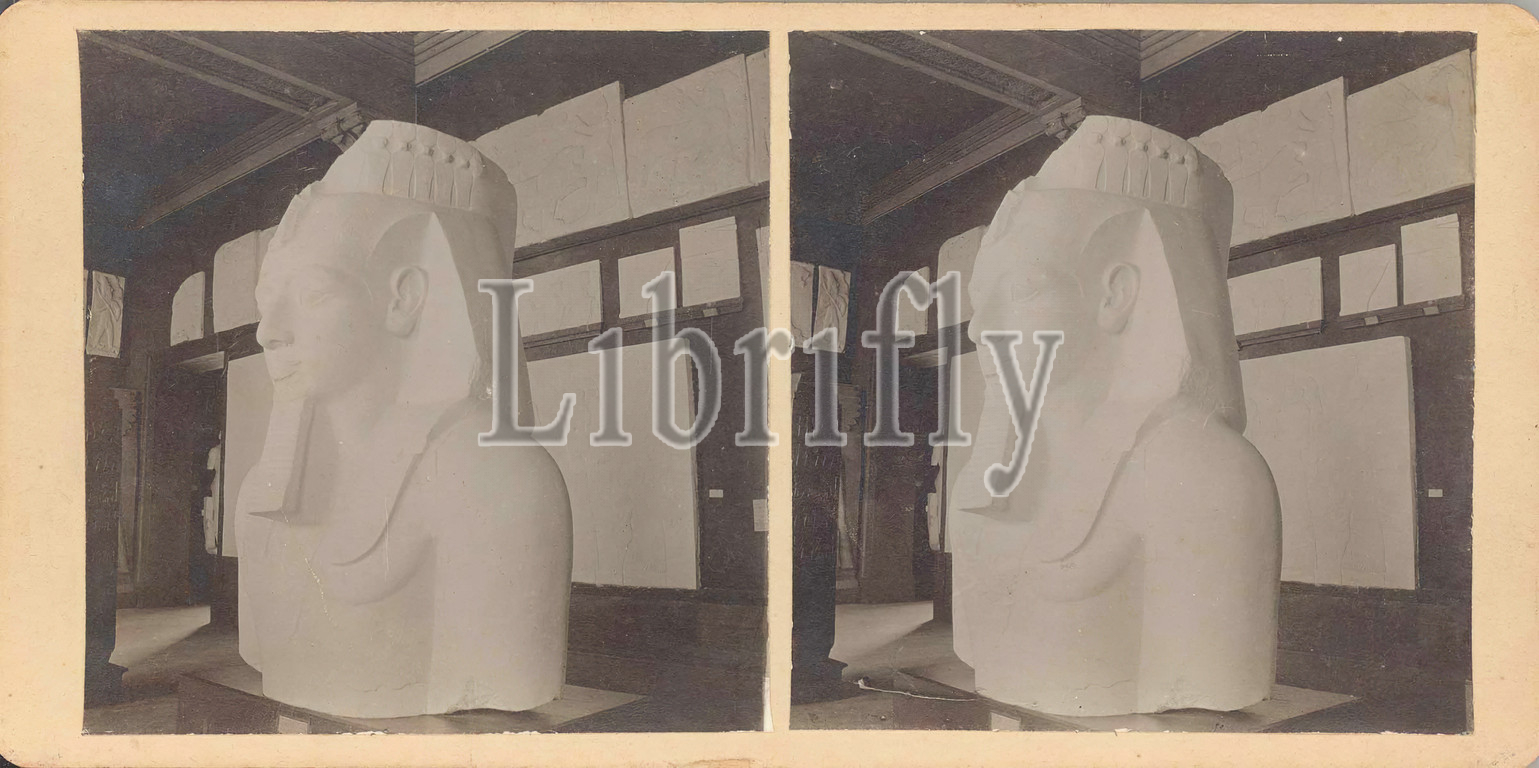 Anonymous Artist, Plaster Cast, Torso, Statue, Ramesses II, 1890, 1900, albumen stereo print mounted, cream card, Mount, card, 3 1/2