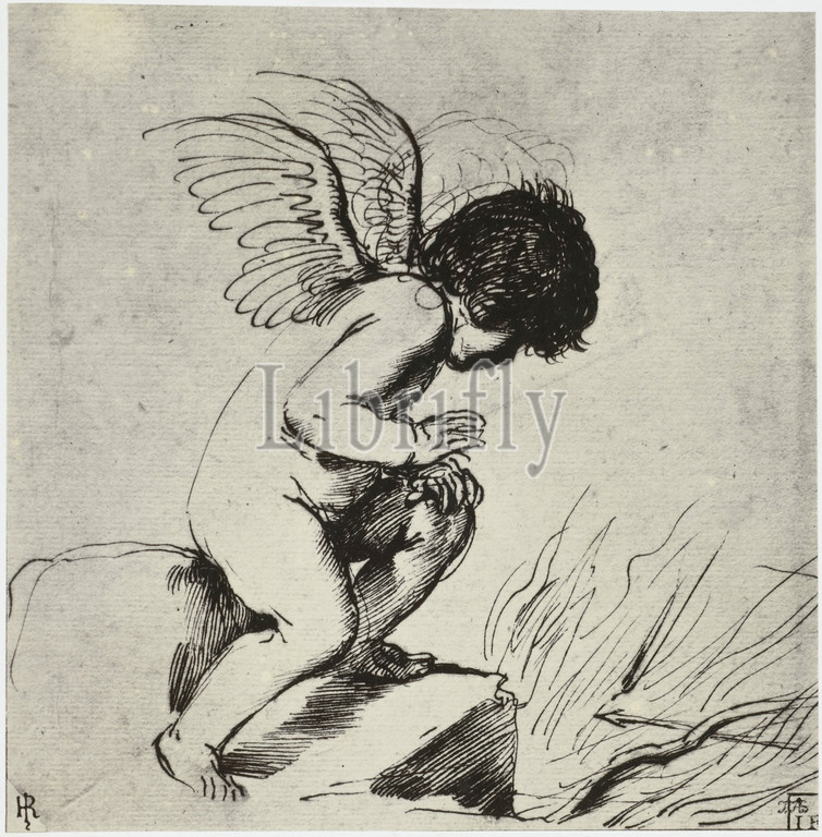 Anonymous, A Cupid, Photo production of drawing in 'The Reveley Collection of Drawings at Brynygwin', fig. 50, drawing, sketch, Philip Henry Delamotte, 1855 - 1858, paper, photographic paper, cardboard, albumen print, h 163 mm × w 161 mm