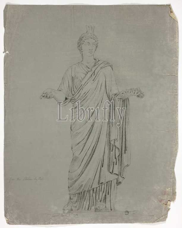 Antique Statue of Standing Goddess with Outstretched Arms, 1774, John Downman, English, 1750-1824, England, Black crayon on ivory laid paper prepared with a gray ground, 503 × 399 mm