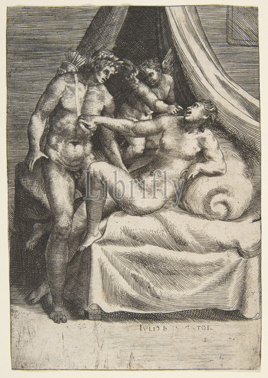 Apollo, Daphne, Loves, Gods, ca, 1531–76, Engraving, sheet, 6 1/8 x 4 5/16, 15.5 10.9 cm, Prints, Giulio Bonasone, Italian, active Rome and Bologna, 1531–after, 1576