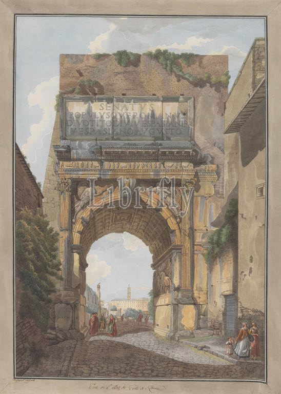Arch, Titus, ca, 1780, Etching, watercolor, gouache, Mat, 31 7/8, 23 1/16, 80.9, 58.5 cm, Prints, Giovanni Volpato, Italian, Bassano, 1732–1803, Rome, Abraham Louis Rodolphe Ducros, Swiss, Yverdon, 1748–1810, Lausanne