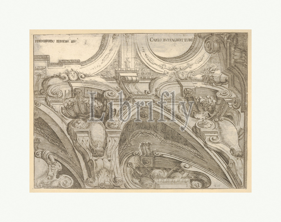 Architectural Detail, Ferdinando Bibiena, Etching, engraving, sheet, 7 3/16 x 9 13/16, 18.3 25 cm, Prints, Carlo Antonio Buffagnotti, Italian, Bologna, 1660–after, 1710, Ferrara, After Ferdinando Galli, 1657–1743