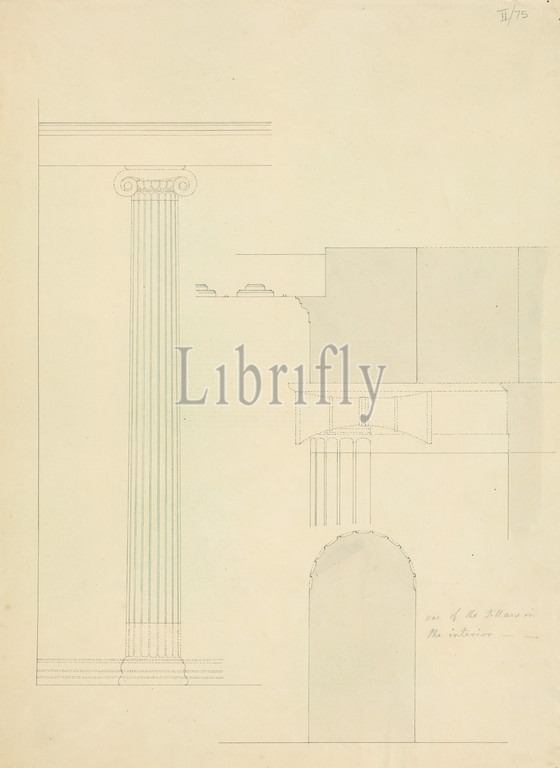 Architectural Drawing, Pillars, Interior, Temple, Sir Robert Smirke, younger, 1781–1867, British, 1802-1804, Gray wash, graphite, pen, black ink, moderately thick, moderately textured, beige, wove paper, Sheet
