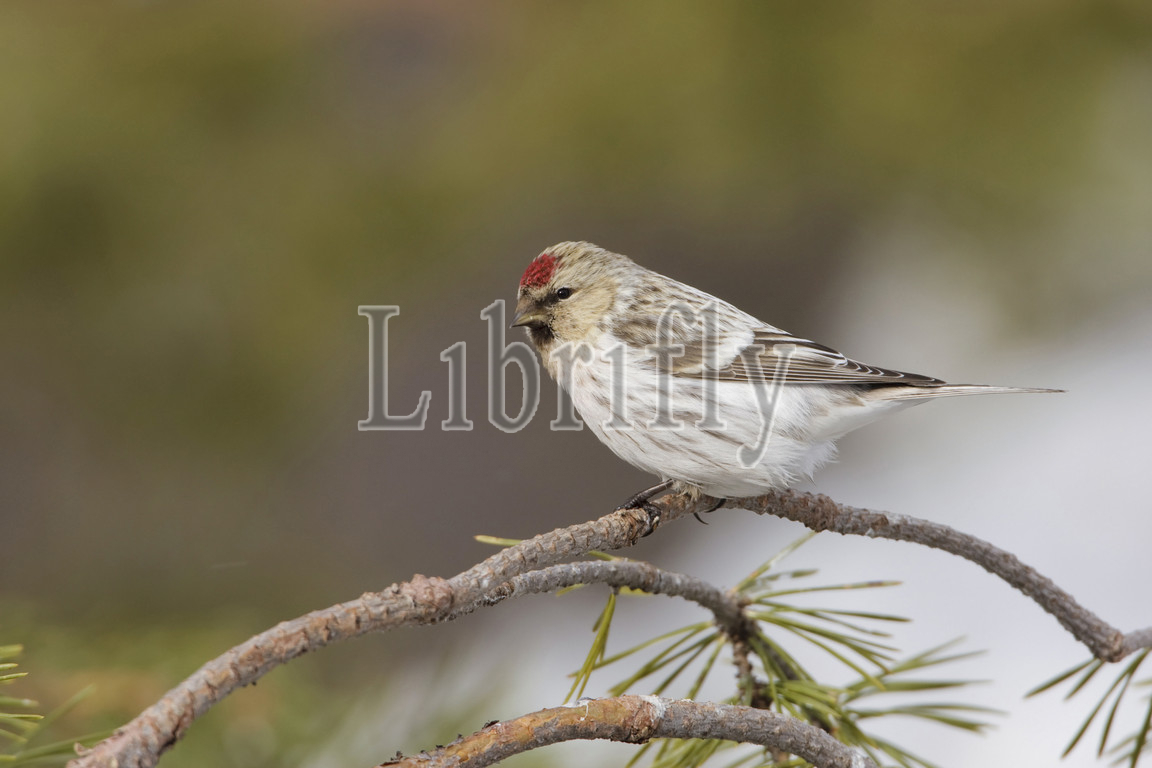 Arctic Redpoll perched on a branch, Acanthis hornemanni, Finland