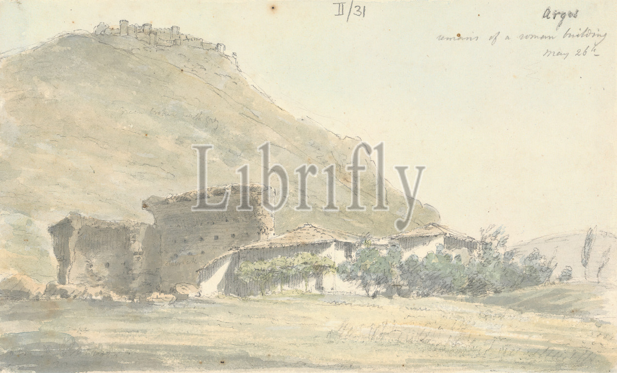 Argos, Remains, Roman Building, Sir Robert Smirke, younger, 1781–1867, British, 1802-1804, Watercolor, graphite, moderately thick, moderately textured, beige, wove paper, Sheet