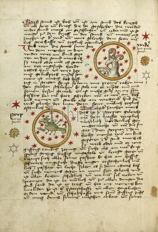 Aries, Scorpio, Ulm, Germany, shortly, 1464, Watercolor, ink, paper bound, original wood boards covered, original pigskin