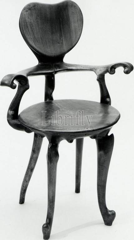 Armchair, ca, 1902–4, Walnut, H, 38, W, 25-1/2, D, 20-1/2, 96.5 x 64.8 52.1 cm, Furniture, Antoni Gaudí i Cornet, Spanish, Reus, 1852–1926, Barcelona, Gaudí, organic, highly decorated architecture, interiors transformed, turn, -century Barcelona, fluid curves, designs, bear, superficial resemblance, Art Nouveau, vigor, own