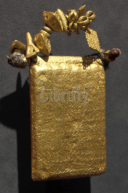 armlet, elbow ornament, Akan people, gold, leather, fiber, unidentified internal material, 4-3/4 x 3 x 1/2, African Art