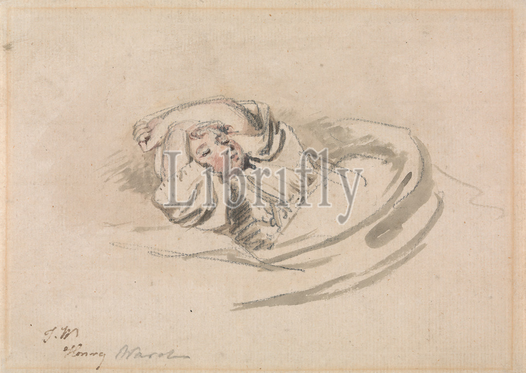 Artist's Son, Henry, Asleep, James Ward, 1769–1859, British, Watercolor, graphite, medium, slightly textured, cream laid paper, Sheet, genre subject, sleeping, son