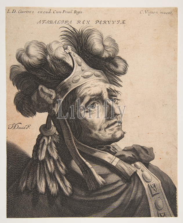 Atabalipa, Roi du Pérou, ca. 1634–37, Engraving, sheet: 8 11/16 x 7 in. (22 x 17.8 cm), Prints, Jerôme David (1605–after 1670), After Claude Vignon (French, Tours 1593–1670 Paris)