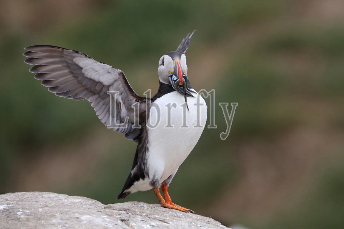 Atlantic Puffin with fish, Fratercula arctica
