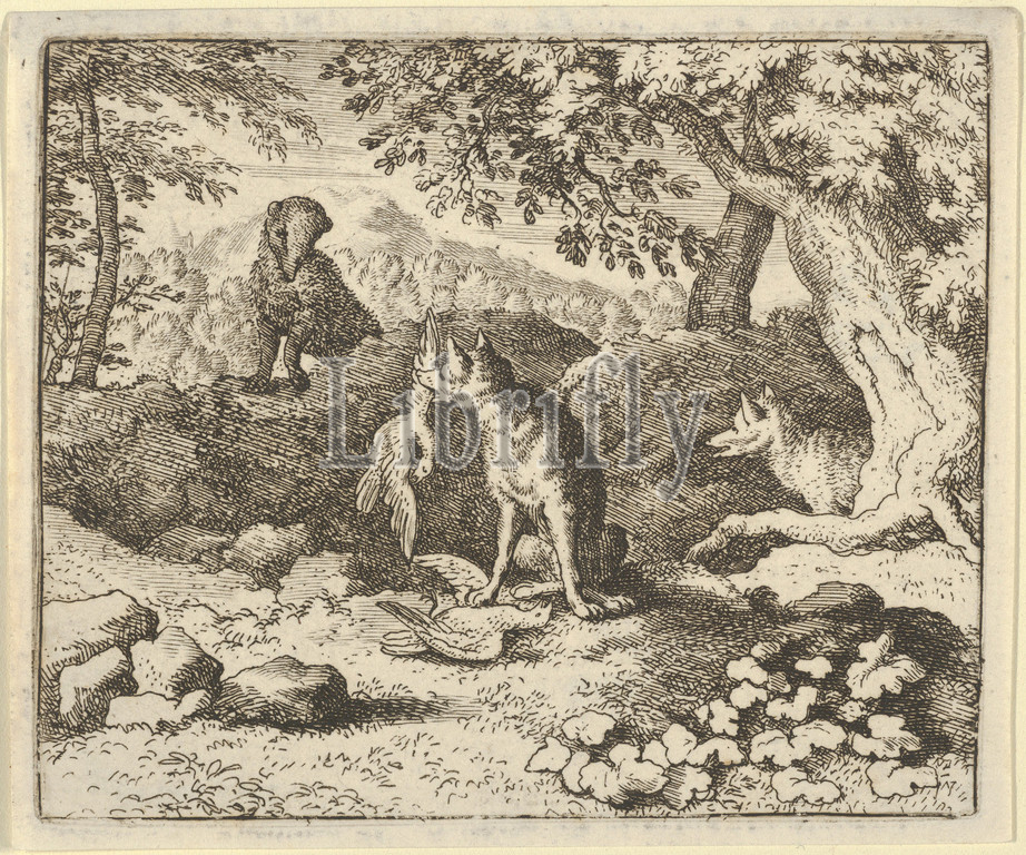 Badger Hurries, Warn Renard, Lion, Intention, Hendrick van Alcmar, Renard, Fox, 1650–75, Engraving, fourth state, five, Plate, 3 3/4, 4 1/2, 9.5, 11.4 cm, Prints, Allart Everdingen, Dutch, Alkmaar, 1621–1675, Amsterdam