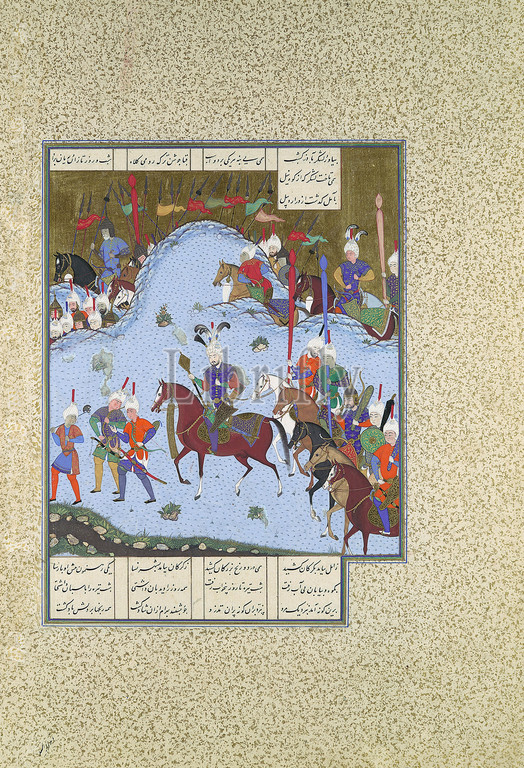 Bahram Gur Advances, Stealth, Khaqan, Folio 577v, Shahnama, Book, Kings, Shah Tahmasp, ca, 1530–35, Iran, Tabriz, Opaque watercolor, ink, silver, gold, paper, Painting, H, 9 7/16 x W, 8 1/16, 24, 20.5 cm, Codices, Painting attributed to Bashdan Qara, active ca., 1525–35, According, Gur, spies, Chin, enemy, army, camped, field, Merv, soldiers marched, across, breadth, caught, completely, off, guard