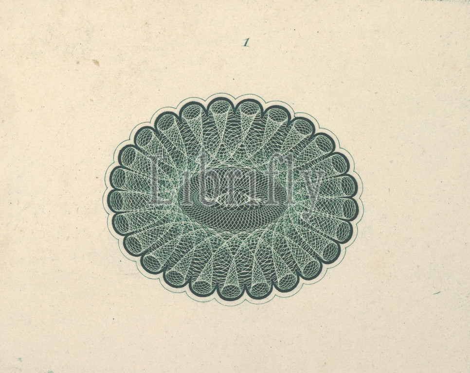 Banknote motif, oval lathe work ornament resembling, lace ruff, ca, 1824–42, Engraving, printed, green ink, chine collé, sheet, 3 7/16 x 2 5/16, 8.7 5.9 cm, Prints, Associated with Cyrus Durand, American, 1787–1868