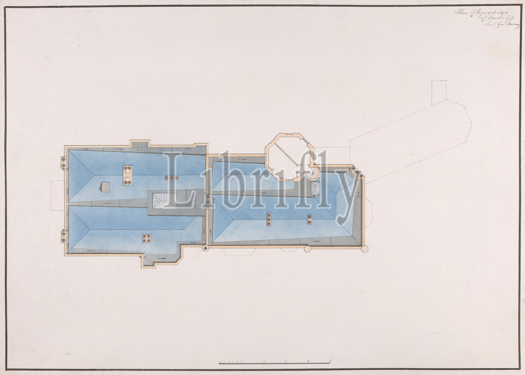 Banner Cross Hall, Sheffield: Roof Plan, Studio of Sir Jeffry Wyatville, 1766–1840, British, ca. 1819, Graphite, pen and brown ink and watercolor on slightly textured, moderately thick, cream wove paper, Sheet: 12 3/4 × 17 7/8 inches (32.4 × 45.4 cm), architectural subject